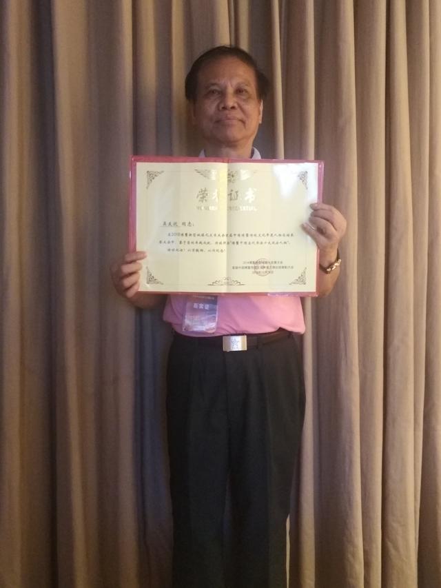 在首届中国博鳌传统文化年度人物总结表彰大会上,吴友优作了精彩的演讲,并现场感悟挥毫,诗云:"